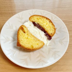 ふんわりカステラに牛乳ムースと粒餡がサンドされています。